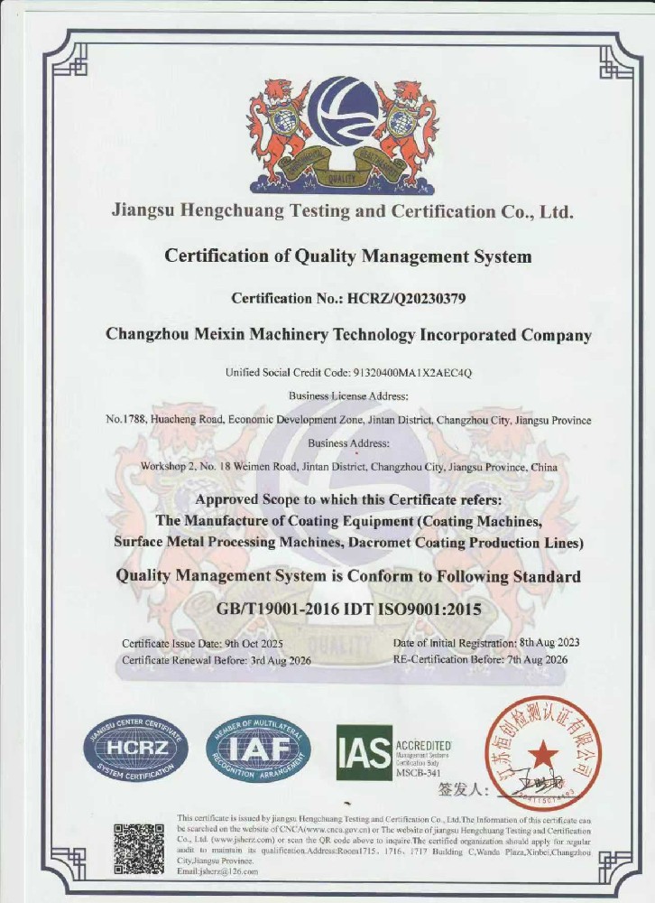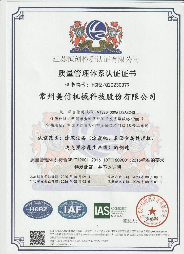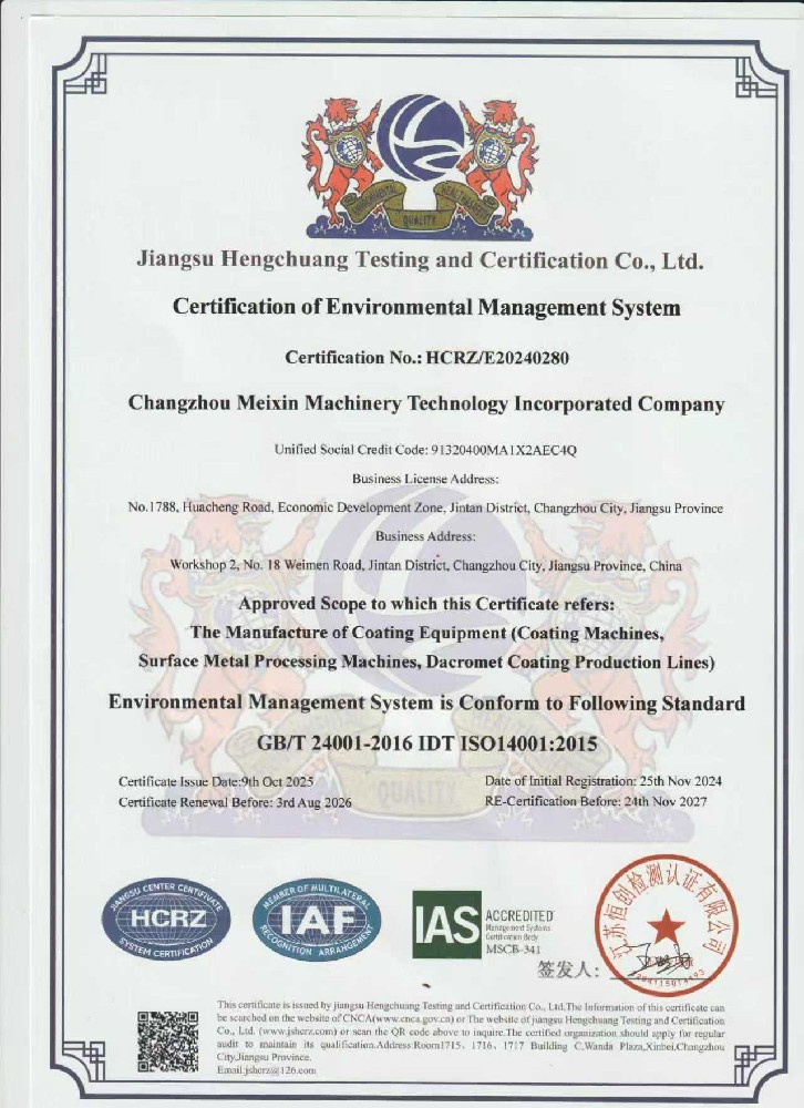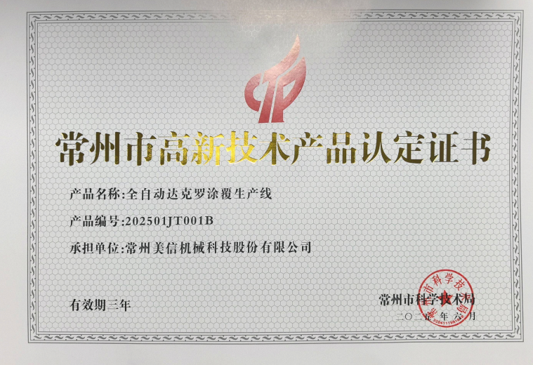 全自動達克羅涂覆生產線(高新技術產品認證證書)